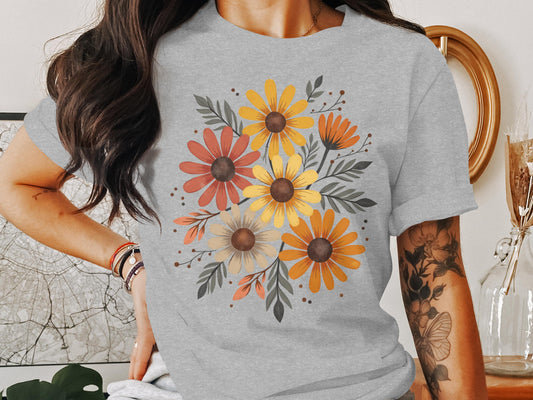 Boho Wildflowers, Flowers Shirt, Womens Graphic Tee, Floral Shirt, Nature Lover Gift, Botanical Shirt, Garment Dyed, Cottagecore Shirt