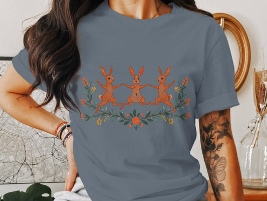 Boho Bunny T-Shirt, Folk Art Rabbit Tee, Floral Bunny Shirt, Vintage Rabbit T-Shirt, Spring Bunny Tee, Easter Rabbit Graphic Shirt