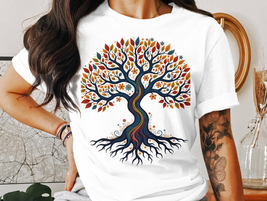 Women Vintage Boho Shirt Tree of Life Flower Tops Watercolor Graphic Tees Casual Short Sleeve Summer T Shirts