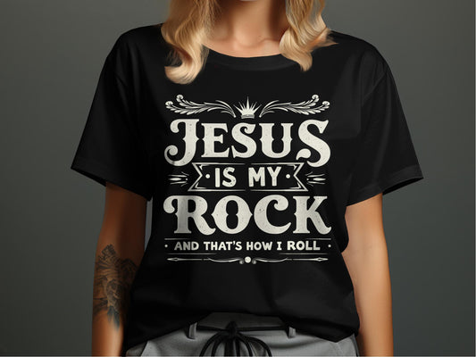 Christian T-Shirt Unisex,Rock And Roll T Shirt Women ,Faith Cross,Religious Tshirt,Jesus Tee,Jesus Is My Rock And That's How I Roll Shirt