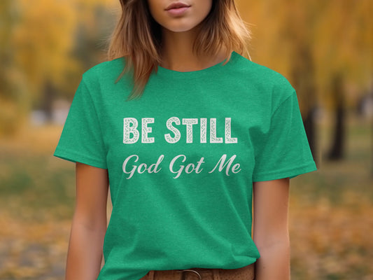 Faith-Based Graphic Apparel Be Still God Got Me T-Shirt | Inspirational Christian Graphic Tee Motivational Religious Shirt for Women