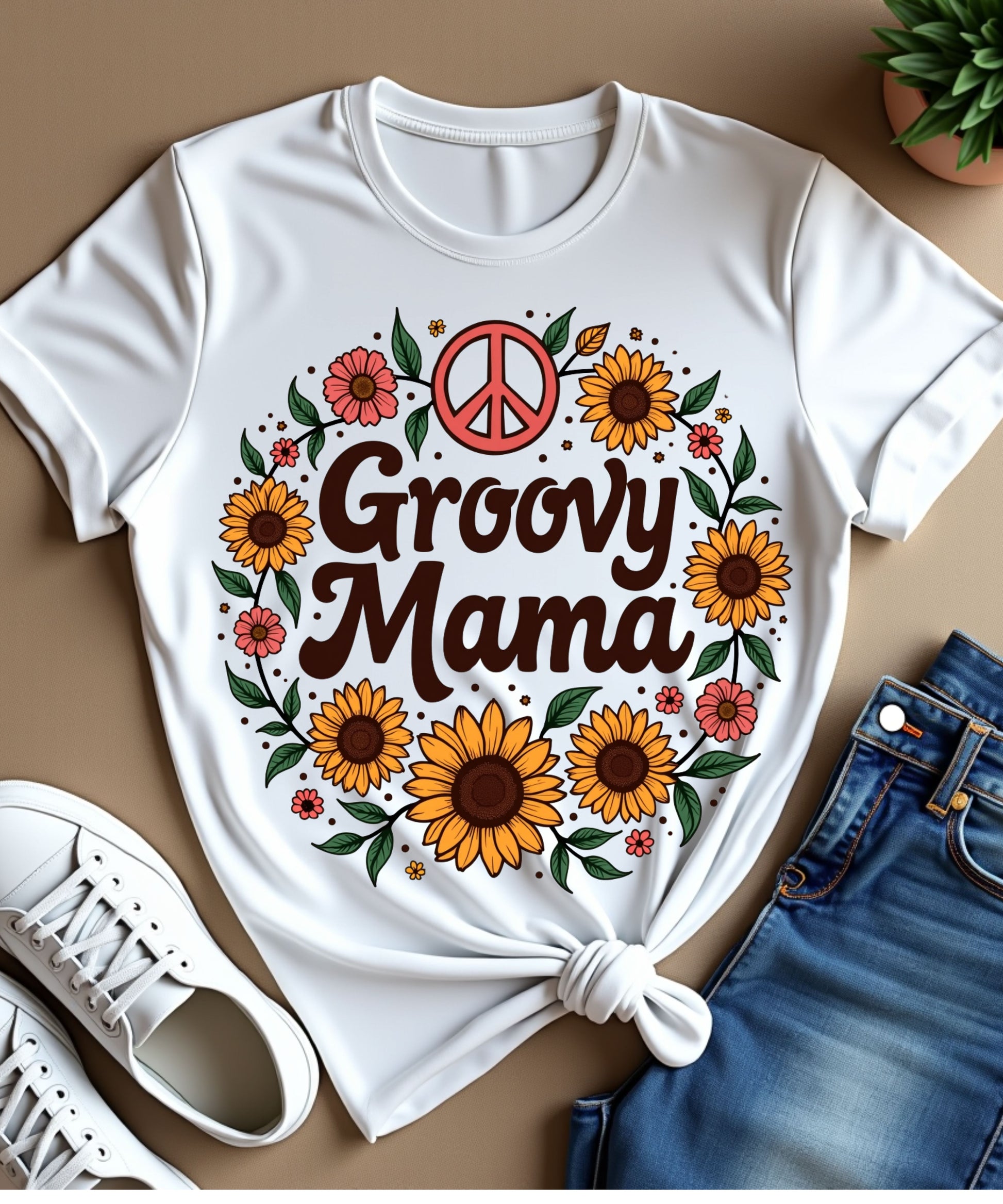 Celebrate Mother’s Day with a vintage hippie-style "Groovy Mama" design, featuring psychedelic patterns, floral accents, and retro fonts. Perfect for free-spirited moms who love peace, love, and the boho lifestyle!